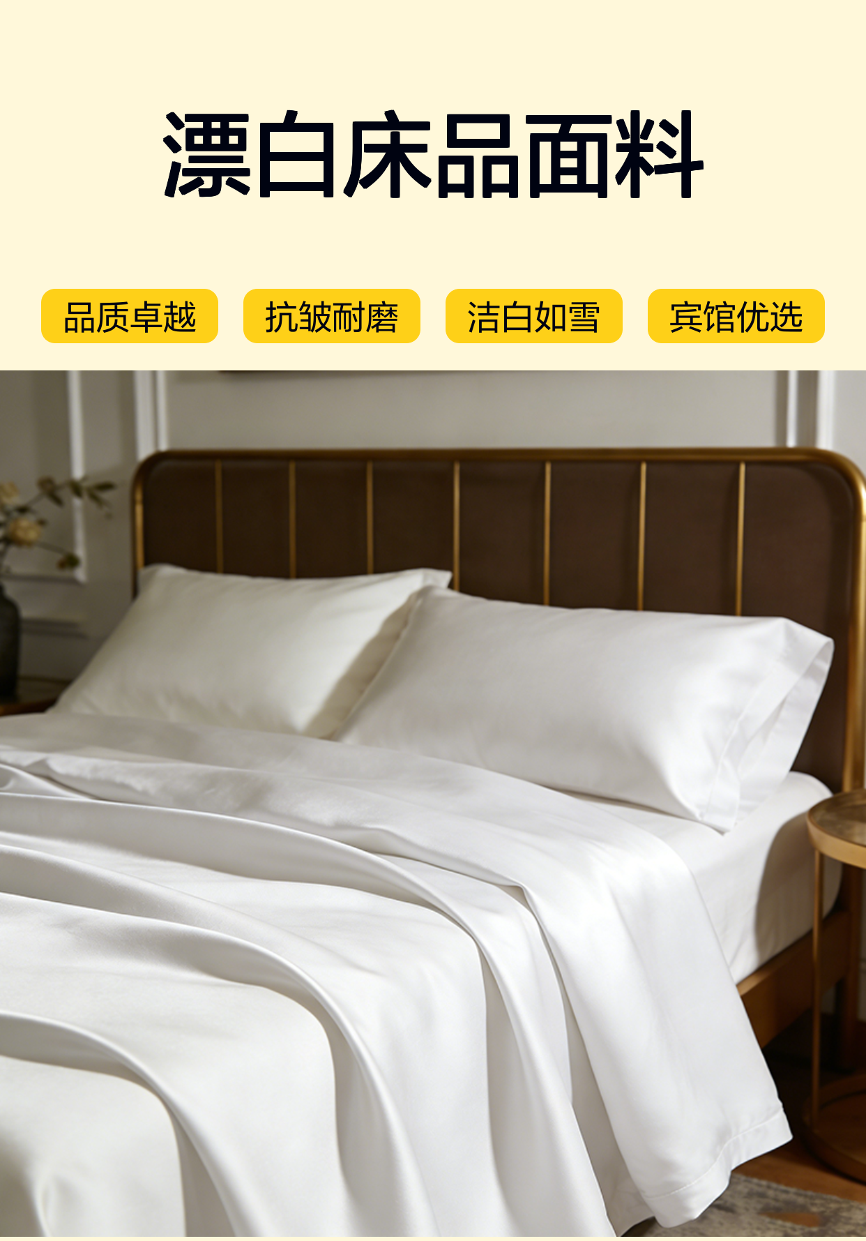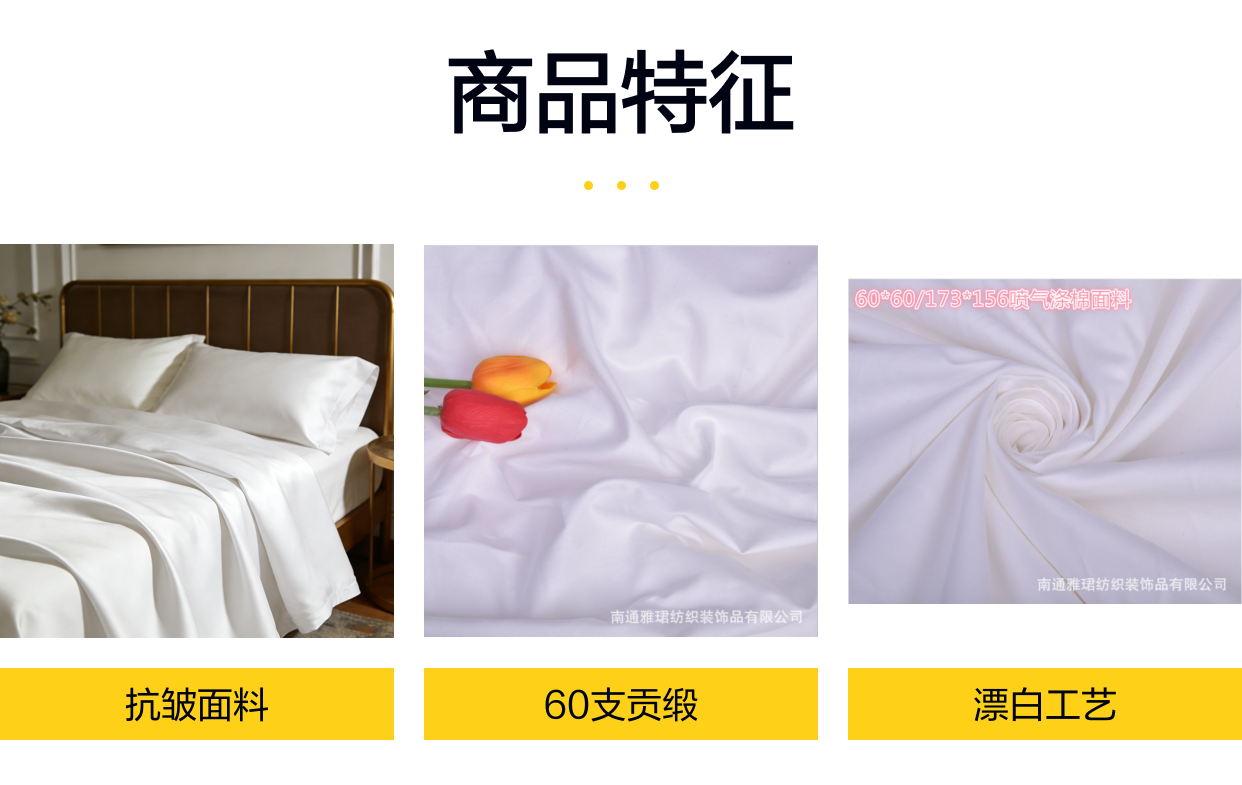 雅珺 酒店抗皱面料350T 漂白床品面料喷气涤棉贡缎60支宾馆用品布